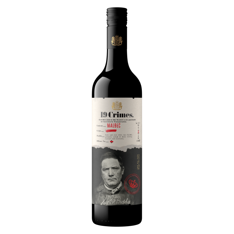 19 Crimes turned criminals into colonists. Upon conviction, British rogues, guilty of at least one of the 19 Crimes, were sentenced to live in Australia, rather than death. This Argentinian Malbec is delicious, filled with dark cherry fruit, soft tannins and a subtle sweetness.