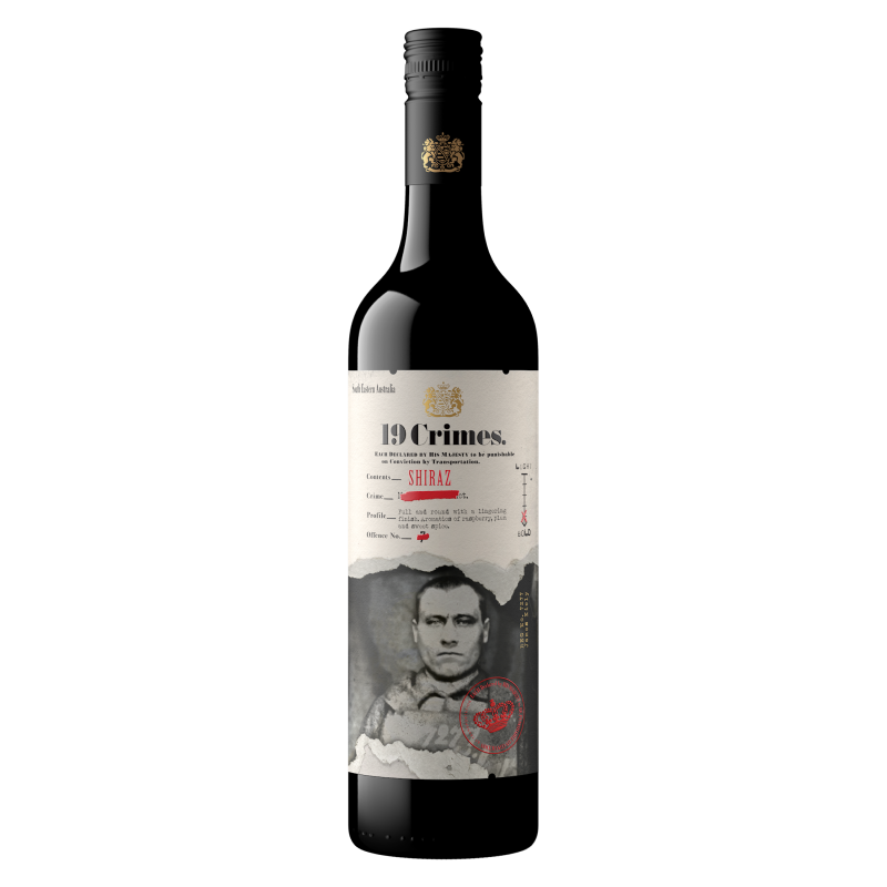 19 Crimes turned criminals into colonists. Upon conviction, British rogues, guilty of at least one of the 19 Crimes, were sentenced to live in Australia, rather than death. The 19 Crimes Shiraz is full of flavours of raspberries, dark plums, and chocolate. Plush tannins provide a lingering finish.