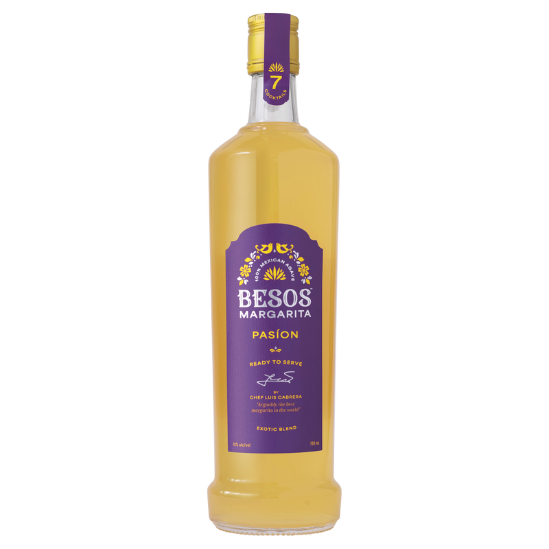 Crafted by chef Luis Cabrera, BESOS Margarita Pasíon builds on his award-winning Clásica blend with an irresistible tropical twist. Made with 100% blue agave tequila, triple sec, and lime, then elevated with luscious passion fruit juice, passion fruit liqueur, and a hint of vanilla, this vibrant cocktail blurs the line between a freshly mixed premium cocktail and a ready-to-serve Margarita. Shake with ice, pour over the rocks, and let every sip take you somewhere sunny. Salud.