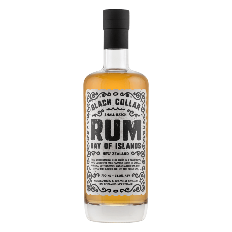 Fermented, pot distilled and aged at Black Collar's distillery in the Bay of Islands. This rum has tasting notes of vanilla, caramel and butterscotch with a hint of smokey char from the oak. Enjoy neat or complement with your favourite mixers and cocktails.