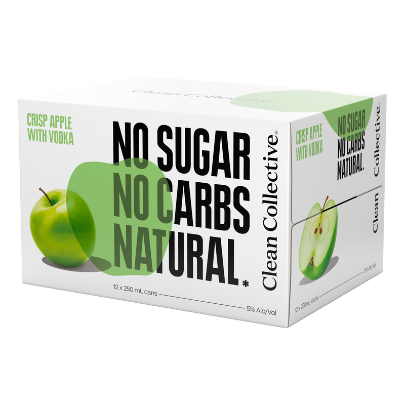 Clean Collective's Crisp Apple with Vodka is light and refreshing with the perfect balance of tartness and sweetness. Contains NO sugar, NO carbs, NO preservatives. Natural ingredients. Gluten free. Vegan. Made in NZ.