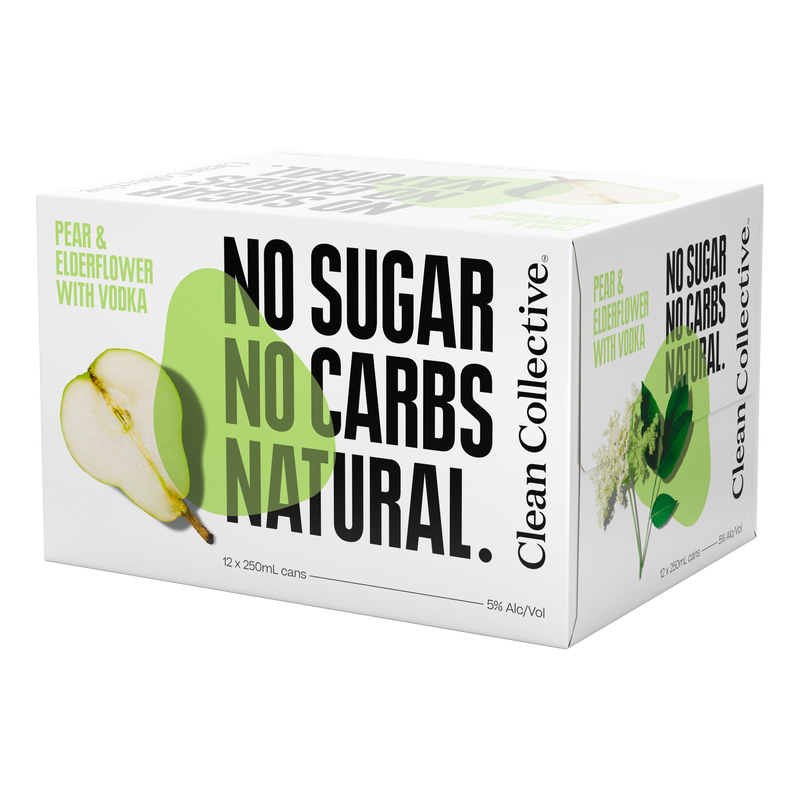 Clean Collective's Pear & Elderflower with Vodka is the perfect combination of sweet and tangy pear, with a subtle undertone of elderflower. Contains NO sugar, NO carbs, NO preservatives. Natural ingredients. Gluten free. Vegan. Made in NZ.