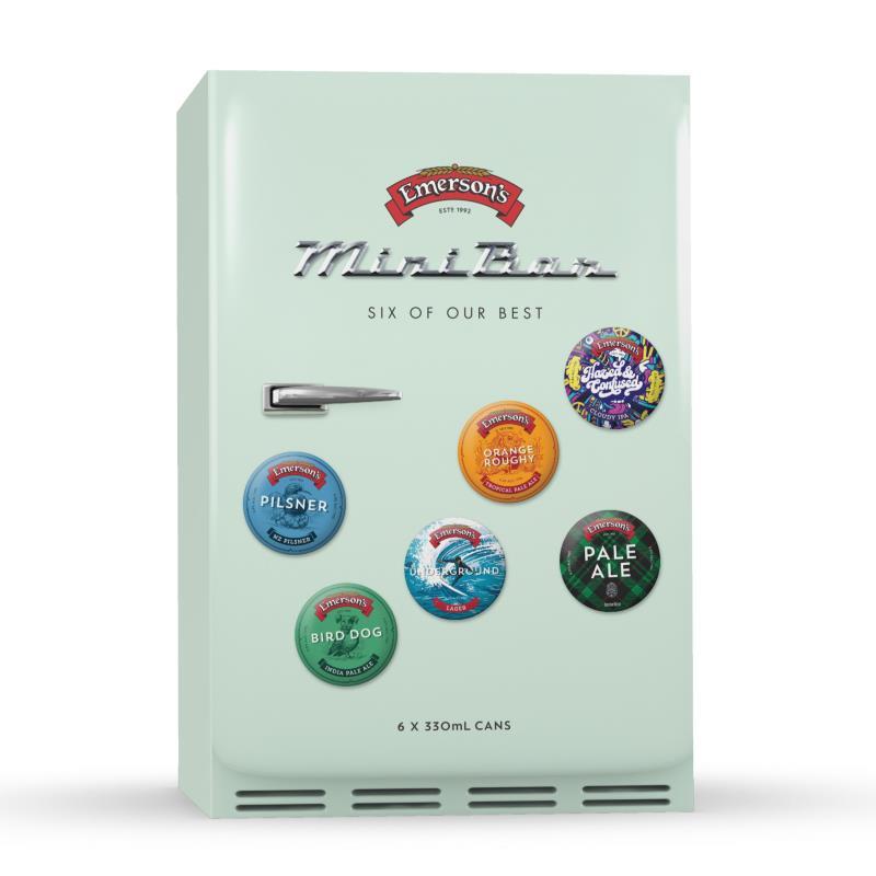 Hold on to an Emerson's tasting where ever you go. The beach, the backyard, the back of beyond, or even just your place. This mini bar contains a carefully curated selection of favourites, so you can take your taste-buds on a journey, even while you're on a journey. Just make sure you keep it somewhere cold - this isn't actually a real fridge.