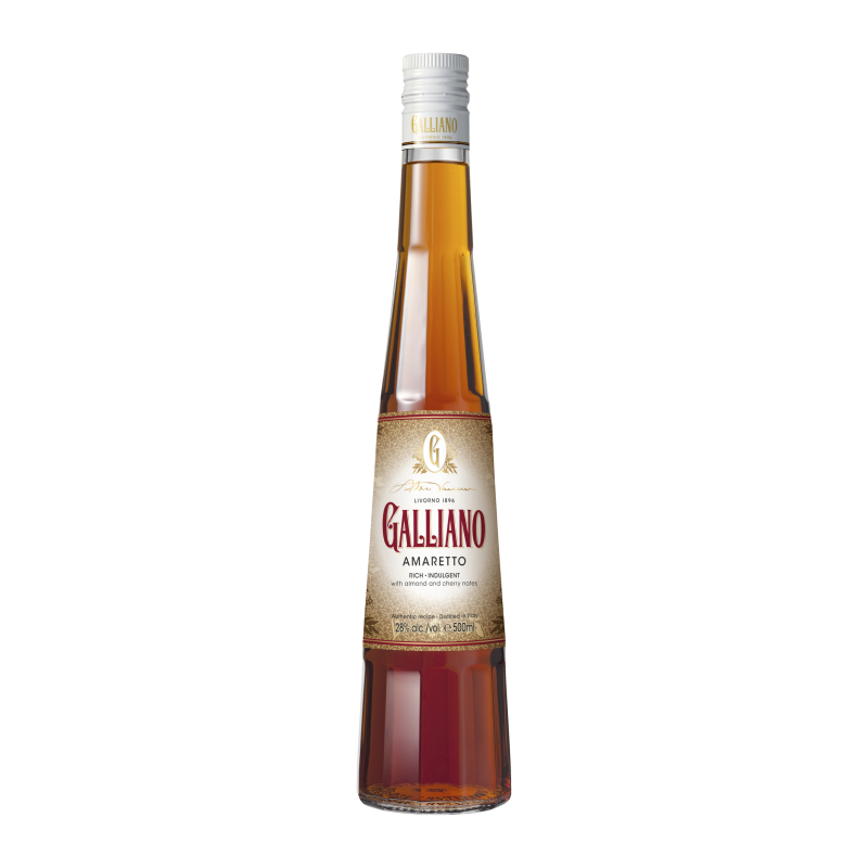 Galliano Amaretto is a rich and especially well-balanced. The bitter almond flavour is obtained by mixing the pure essence of bitter almonds with essential oils of geranium, rose and orris. Besides the familiar marzipan and bitter almond flavour, it contains hints of roasted cacao beans and Madagascar vanilla. The subtle note of sweet and sour cherries comes from the flesh and stones of the fruit. The distillate is left to age for a few weeks to develop the sweet, caramel and bitter aromas, which results in the unique feature of Galliano Amaretto.