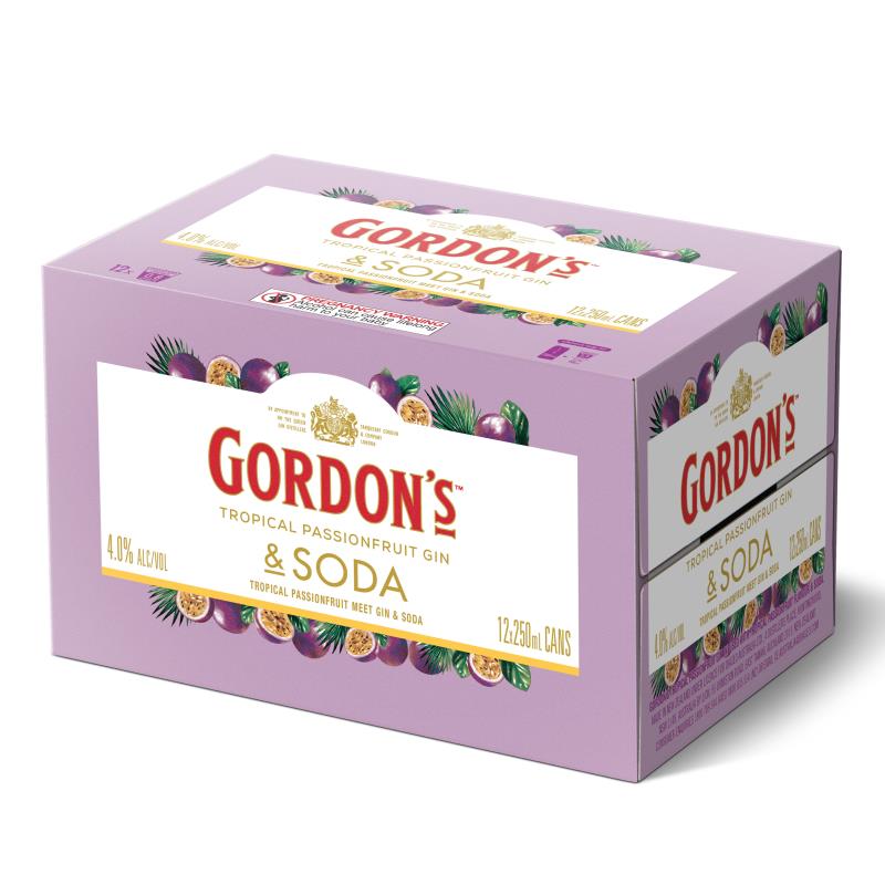 Gordon's Tropical Passionfruit Gin & Soda 4% Cans 12x250ml