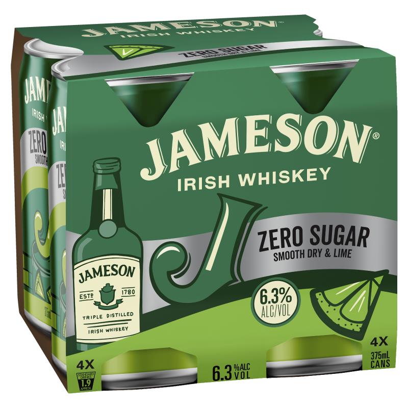 Jameson Zero Sugar Smooth Dry & Lime 6.3% Cans 4x375ml