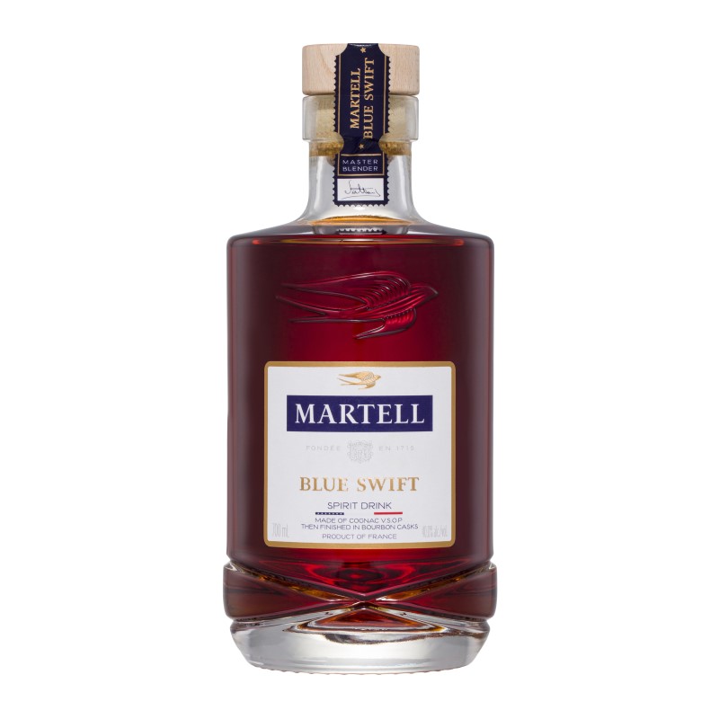 Martell Blue Swift is made from Cognac VSOP matured in French Oak Barrels and finished in United States Bourbon Casks. Subtle notes of candied fruit are complimented by vanilla and toasted oak from the Bourbon Casks. Resulting in an exceptional expression of the Martell style, with a rounded taste and unique character.