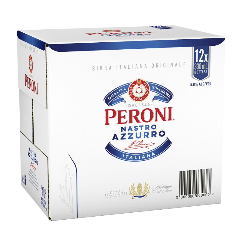 Peroni Nastro Azzurro is Italy's number one premium beer. It is brewed using the finest hops, two row spring planted barley and contains 25% Italian maize, including the proprietary variety Nostrano Dell'Isola. Effortlessly stylish this Mediterranean style lager delivers an unmistakable crisp, refreshing taste and a fine subtle aroma.