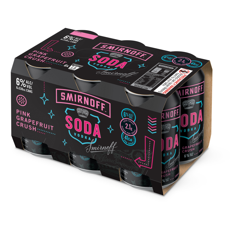 Smirnoff Soda Pink Grapefruit Crush 6% Cans 6x330ml