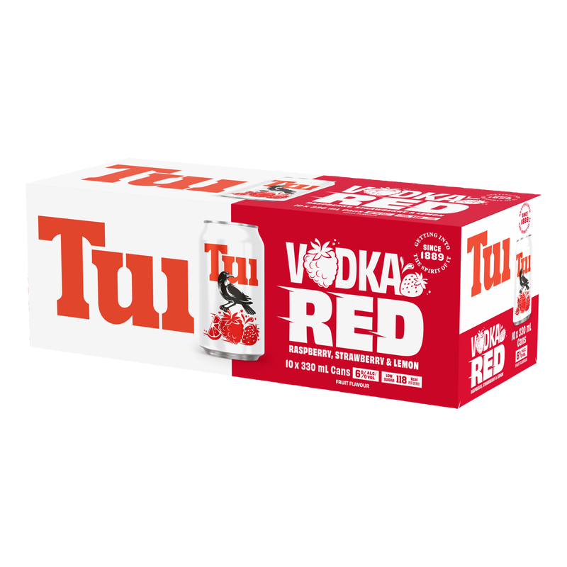 Tui's never played by the rules, and this time, they've ripped the rulebook to shreds. Colour leads. Flavour follows. Raspberry rizz and strawberry sass bring the flavour, with the sugar trimmed, not trashed Low sugar. 6%. No compromises. Big flavour. Bold colour.