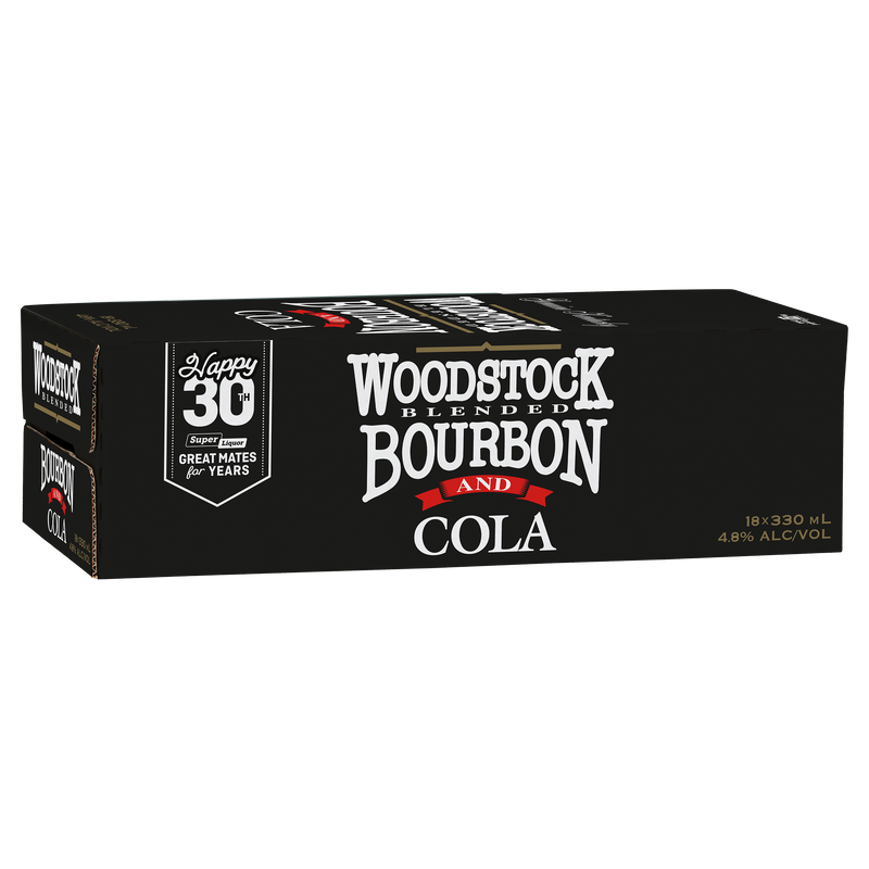 Woodstock is tributing Super Liquor's 30th birthday with a grand bromantic gesture - an exclusive, limited release retro-branded 18-pack of 4.8% Bourbon & Cola in 330ml cans.